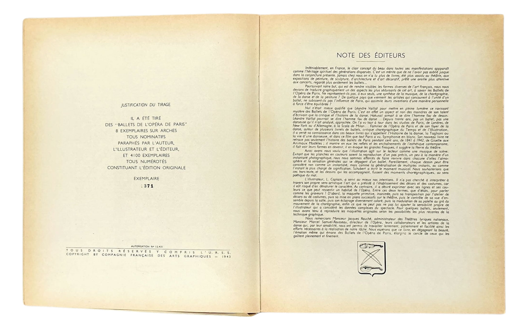 Ballets de l'Opéra de Paris. No 1 371 of 4 100 numbered copies.