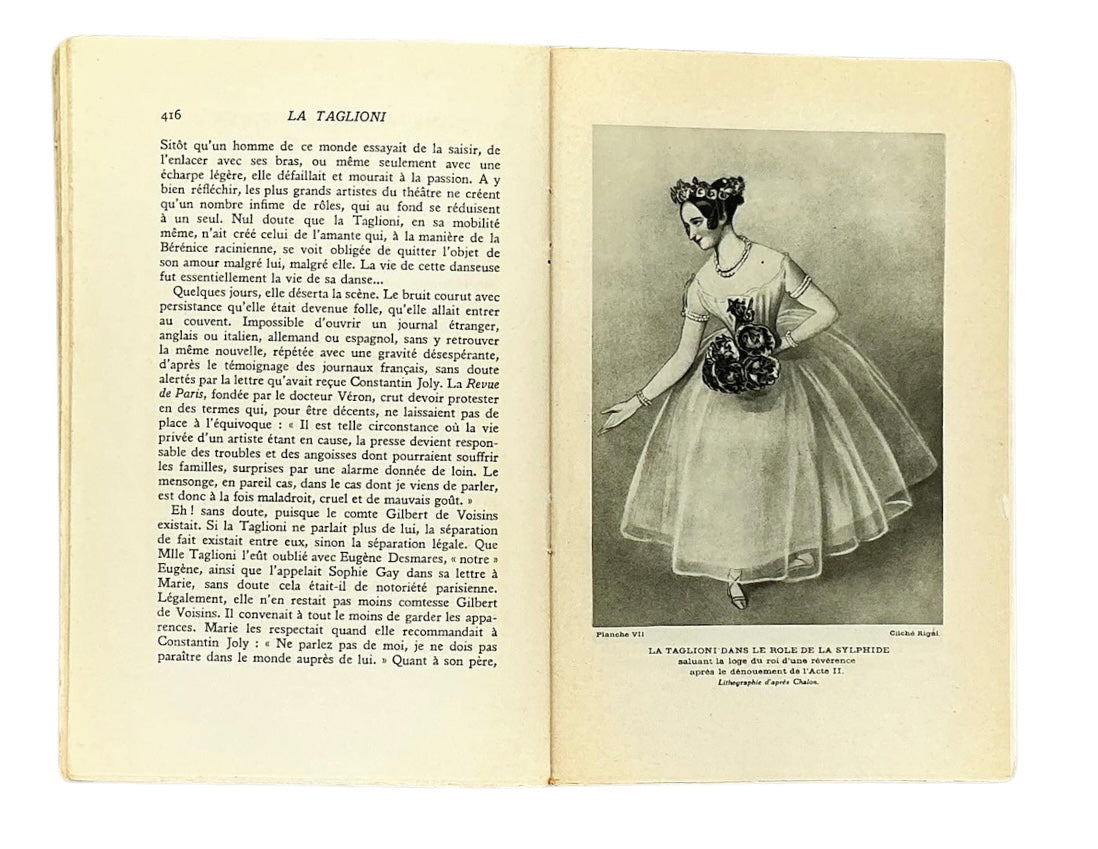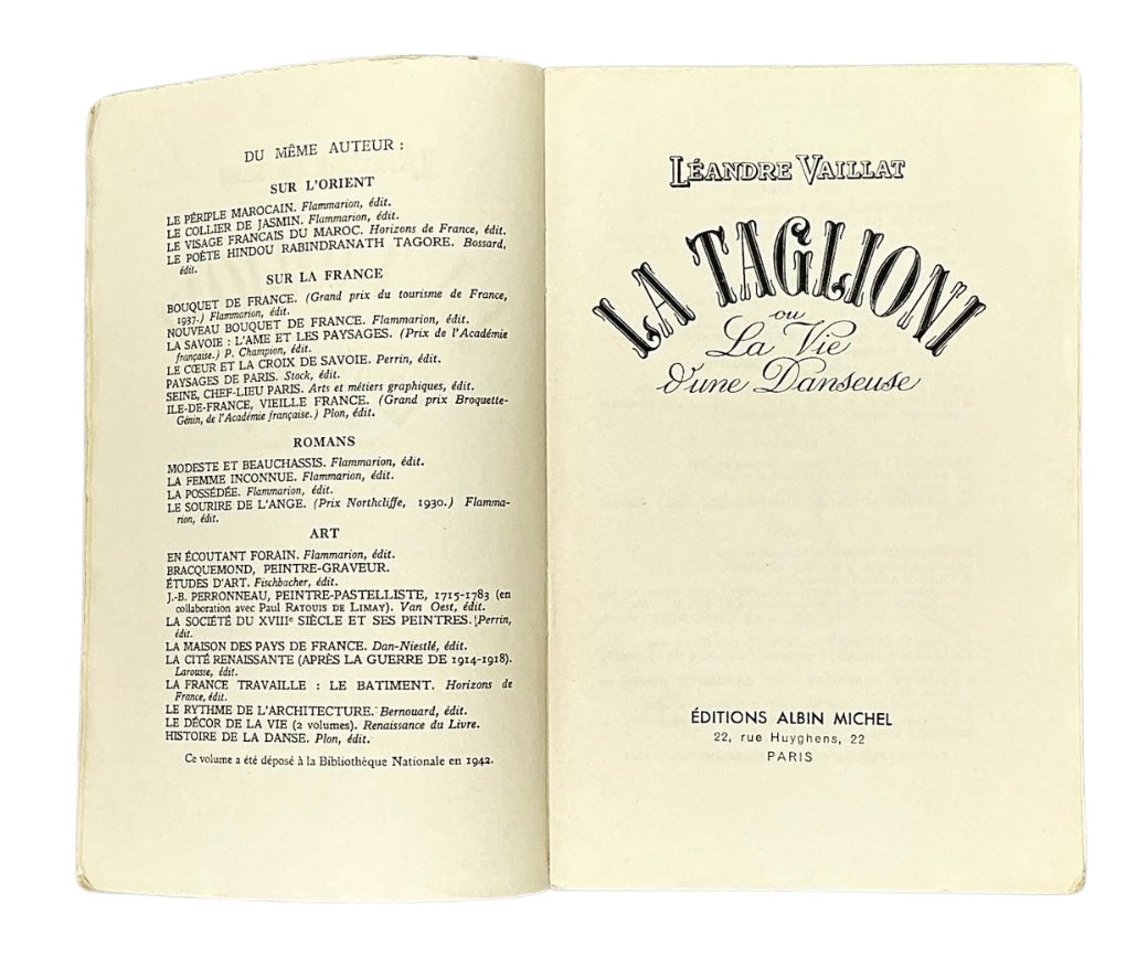 The book about the prominent 19th-century ballerina Marie Taglioni was written by Léandre Vaillat (1878–1952), a renowned dance and art critic, essayist, and novelist, known for works such as 'Histoire de la danse' (1942).