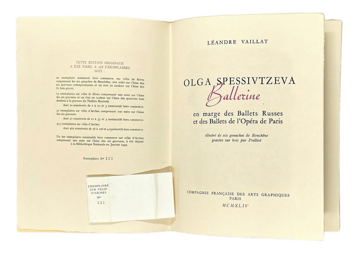 Olga Spessivtzeva. No 131 of 473 numbered copies on Arches vellum.
