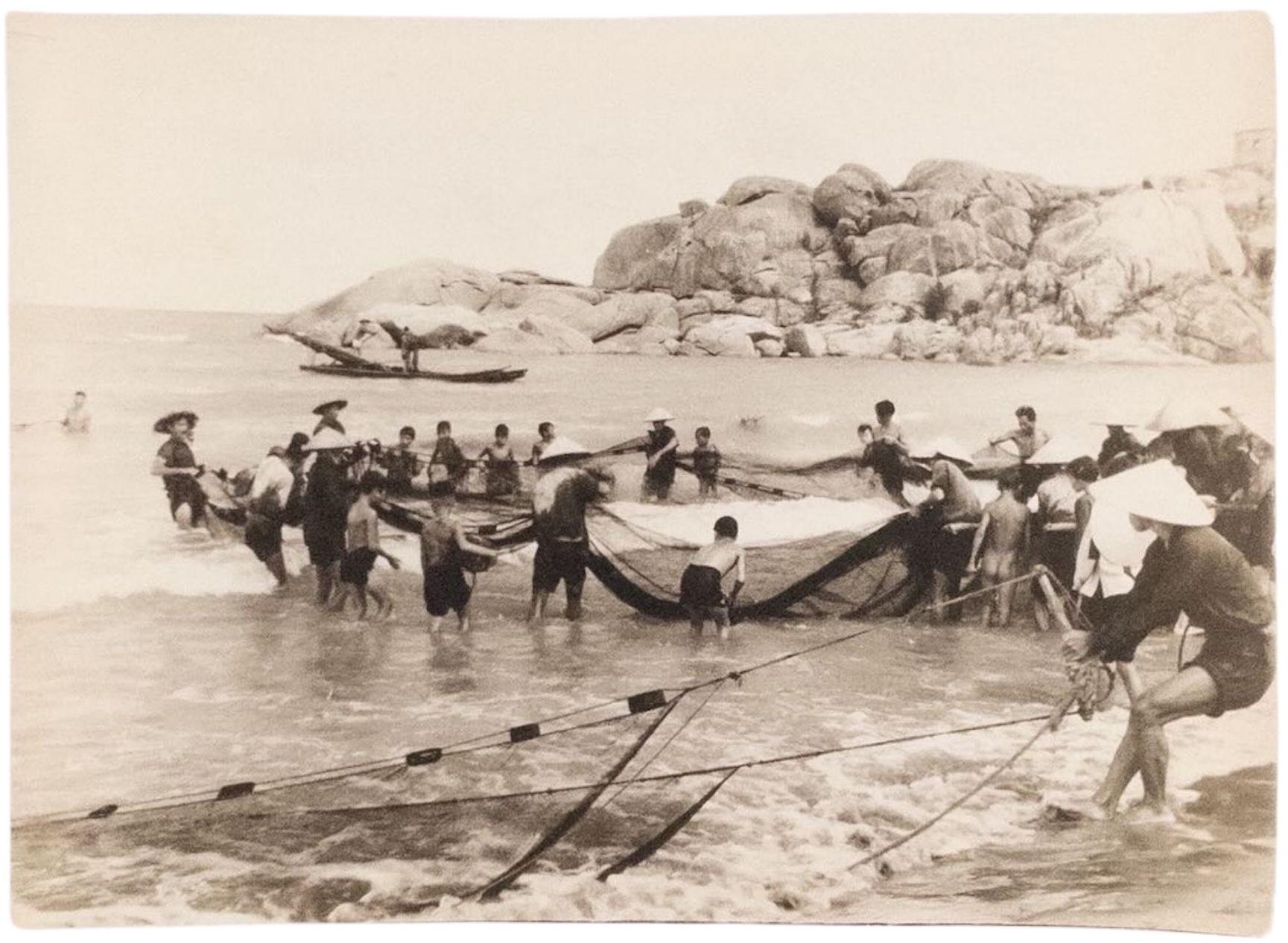 Beyond landscapes and architecture, the collection reflects local life and traditions: a traveling circus, festival dances, New Year celebrations, rice farming, fishing, and the everyday routines of Soviet specialists in Vietnam. One striking photo shows an official announcement of an approaching typhoon.