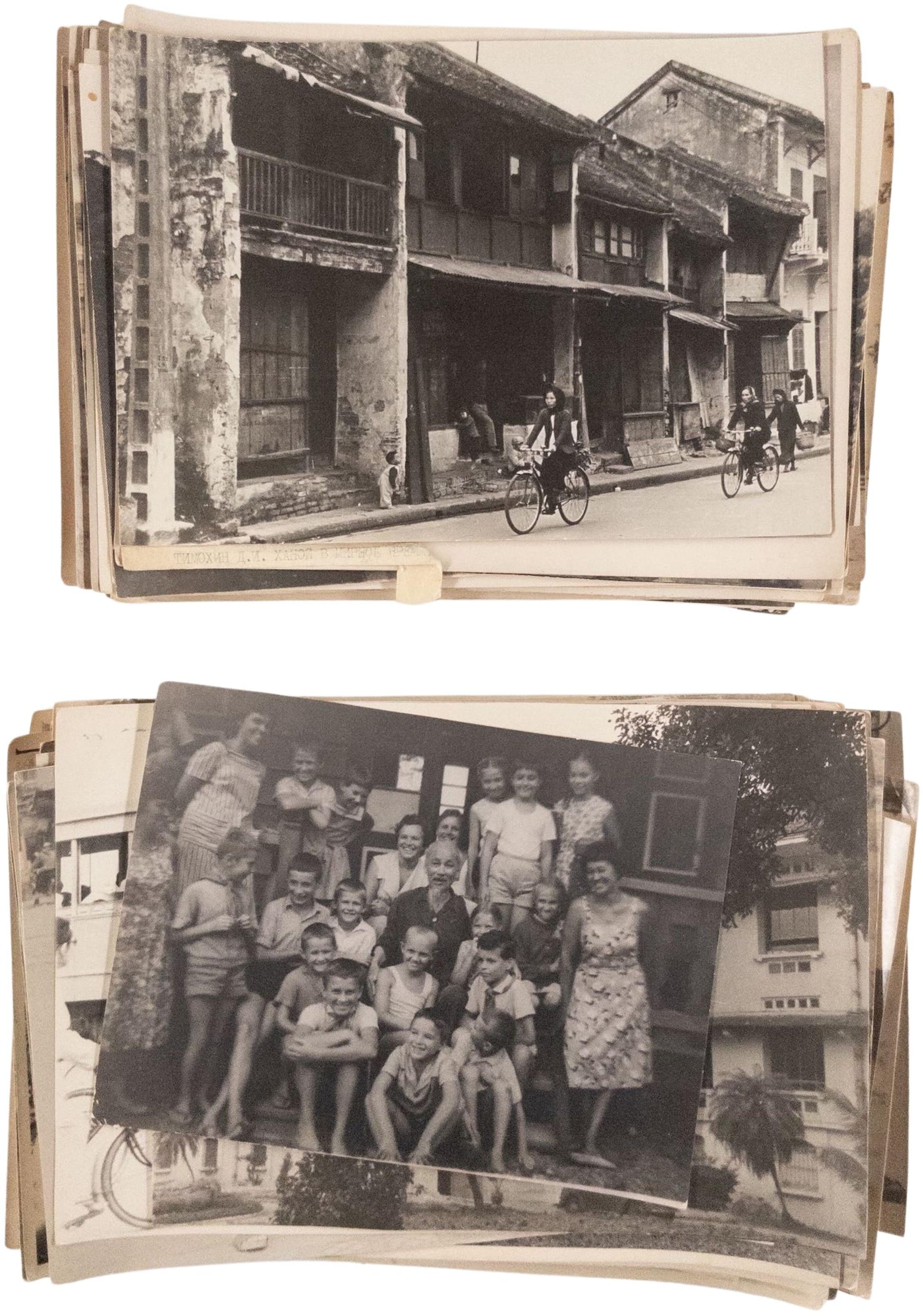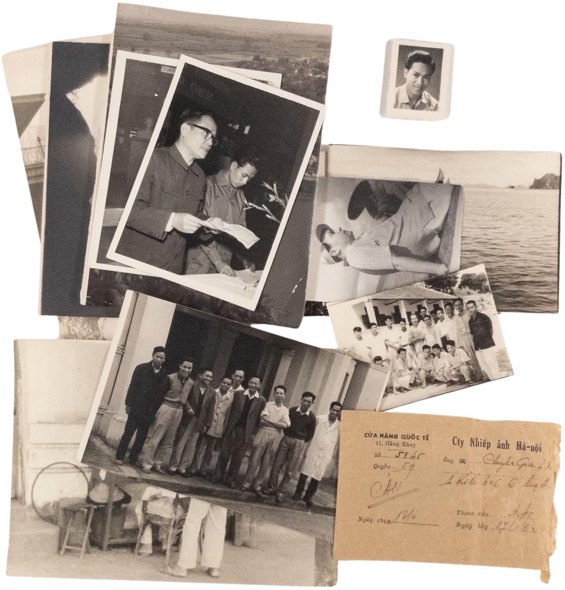 Some soiling and rubbing, creasing to some photo edges, traces of glue on the reverse of some photos. Some photographs signed on the reverse in pencil and blue ink. Accompanied by an envelope from a Hanoi photo studio. Among the photographs is a souvenir photo that was used as a postcard (dated 1962).