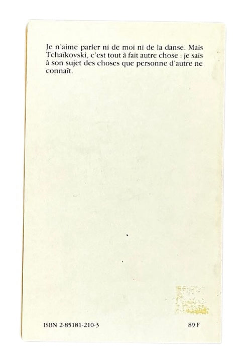 This is the French translation of 'Balanchine’s Tchaikovsky: Conversations with Balanchine on His Life, Ballet, and Music' (1985) by Russian journalist and musicologist Solomon Volkov (b. 1944). The book offers unique insight into the life and artistic philosophy of George Balanchine, one of the greatest choreographers of the 20th century. Through candid interviews, Balanchine reflects on his childhood in Tsarist Russia, his hardships during the Bolshevik era, and his emigration to America. He also shares his deep admiration for Tchaikovsky’s music—often misunderstood due to its popularity—and explores how it influenced his work.