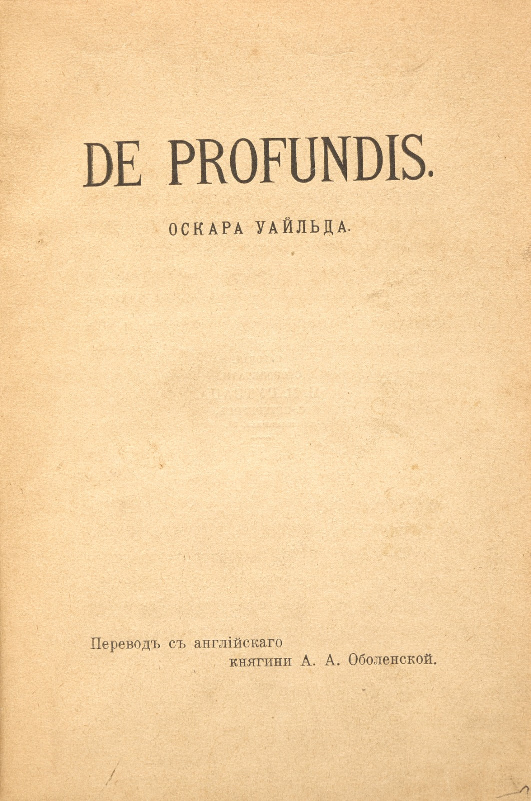 First and only edition of this translation. First Russian edition of 'De Profundis' as a separate book.