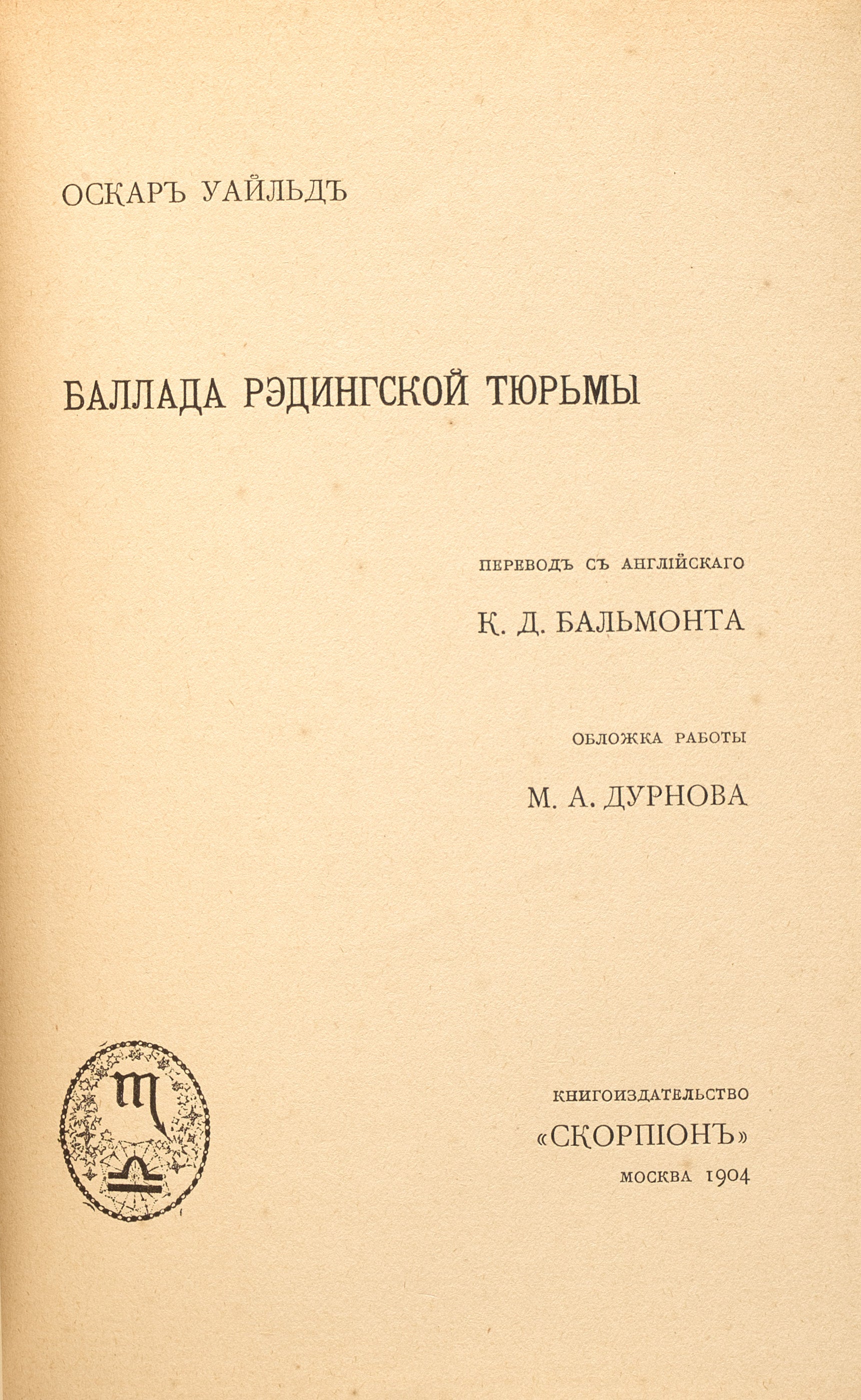 The book's cover featuring a portrait of Oscar Wilde was created by Modest Durnov (1867–1928), a painter, poet, architect, and a close friend of Balmont. Durnov was known as 'a demon', a 'master of thought', and a 'Moscow Dandy'. According to some accounts, he met Wilde during one of his trips to London.