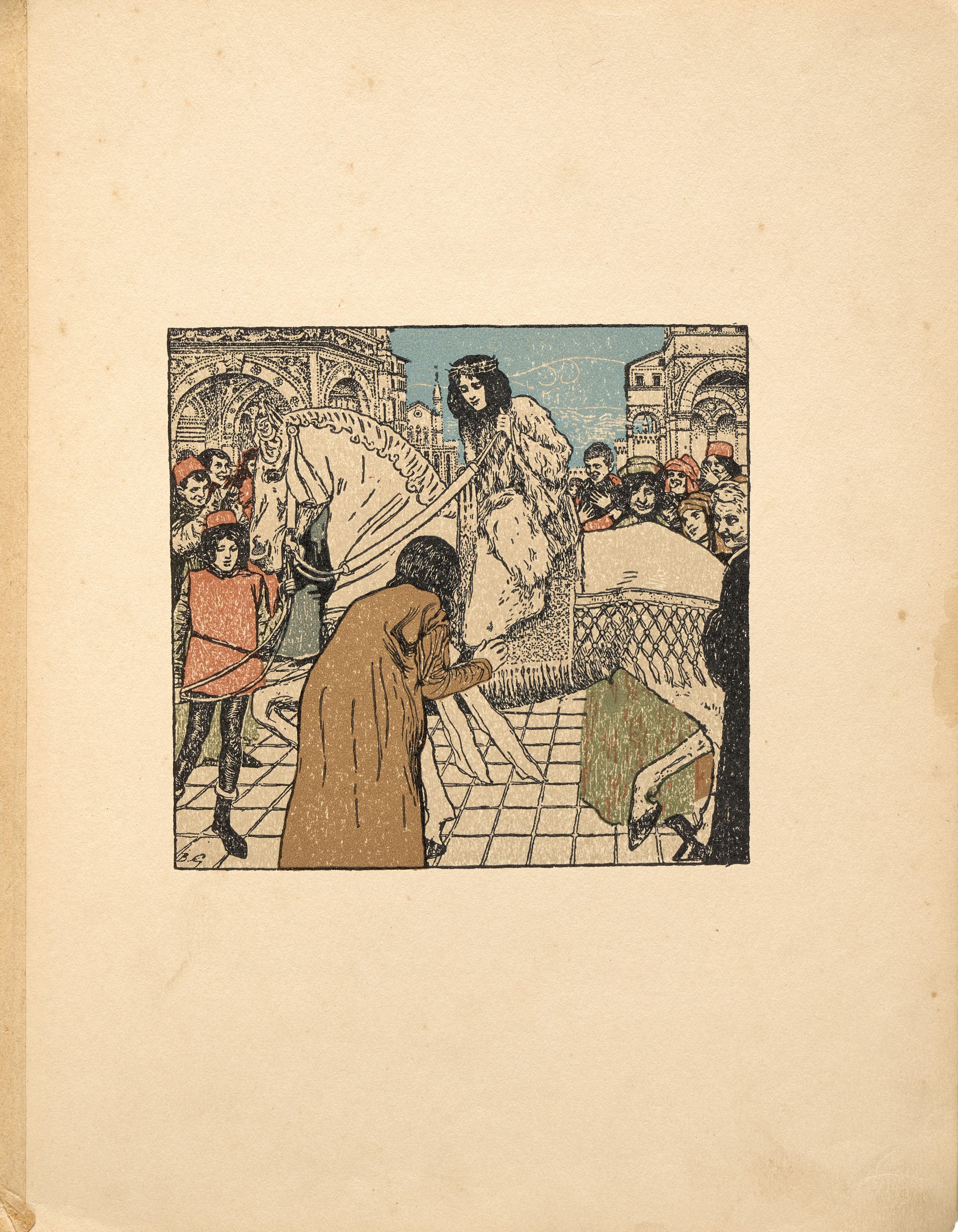 The illustrations and cover design were crafted by Armenian painter and art critic Vardges Sureniants (1860–1921). Sureniants studied at the Moscow School of Painting, Sculpture, and Architecture, as well as the Academy of Fine Arts in Munich. The illustrations were reproduced by zincography, and the title, text, and headpieces are printed in brown.